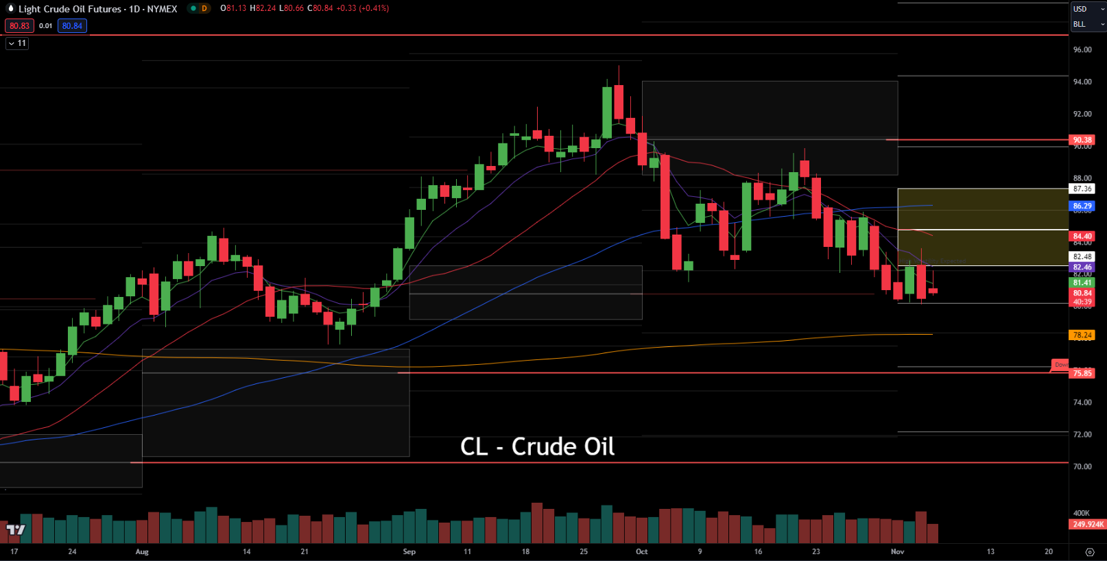Crude testing the bottom of the monthly value area from below. Still benign✔️