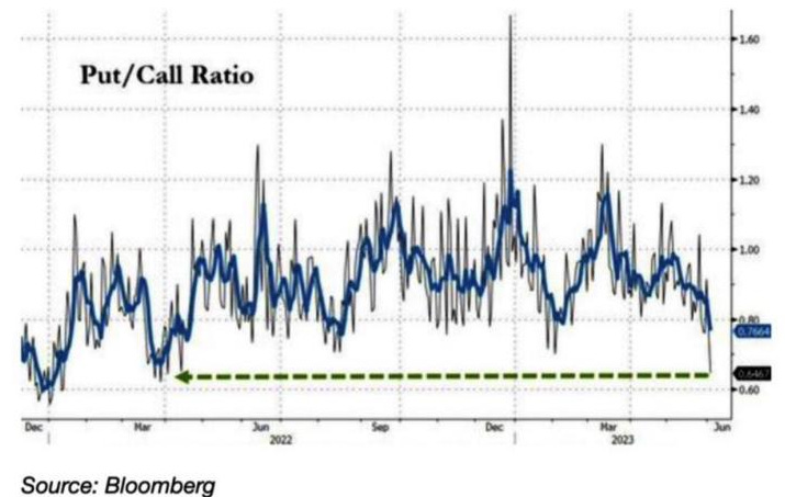 And with this, we just recorded the lowest put/call ratio in 2 years according to Bloomberg.
