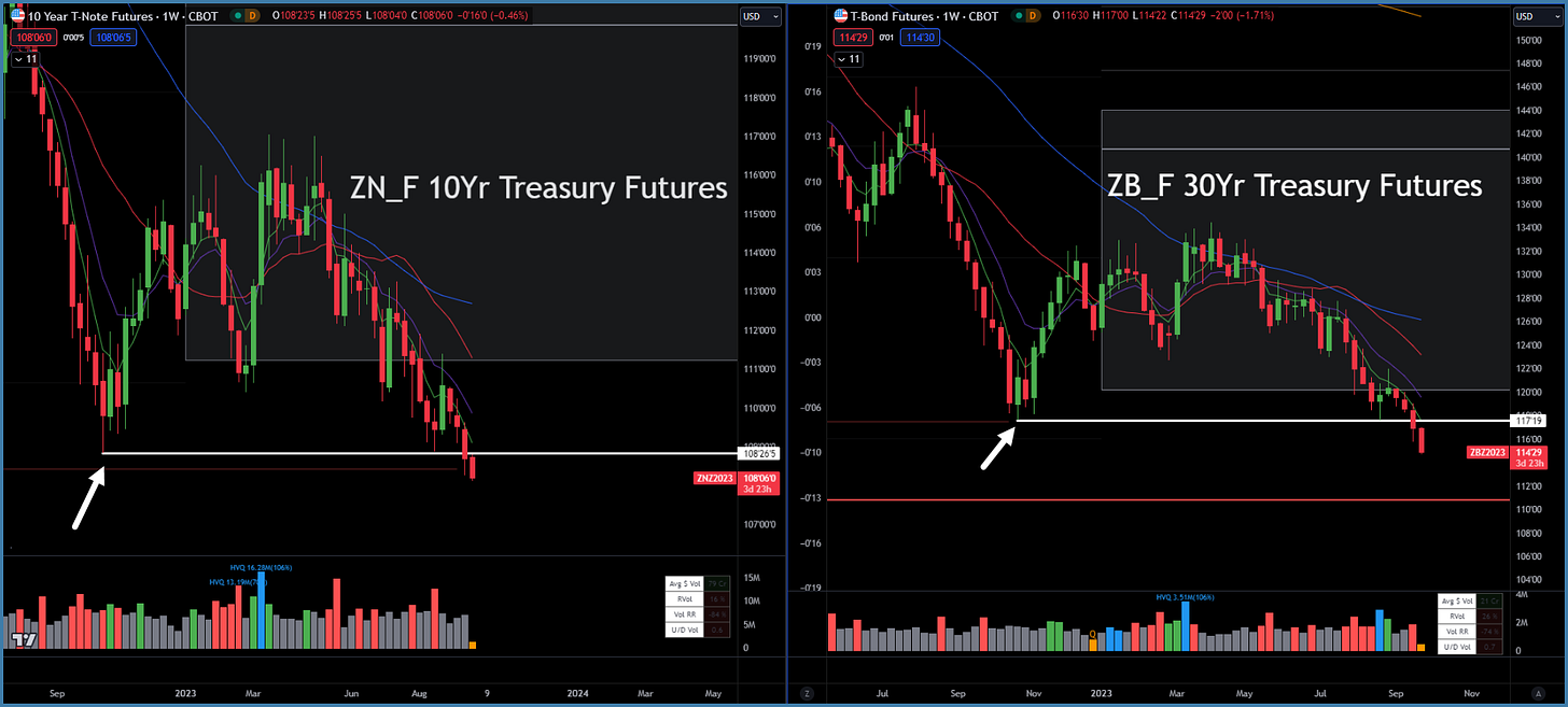 Long-term treasuries cascaded below their Fall ‘22 lows in what appeared to be a capitulatory move.