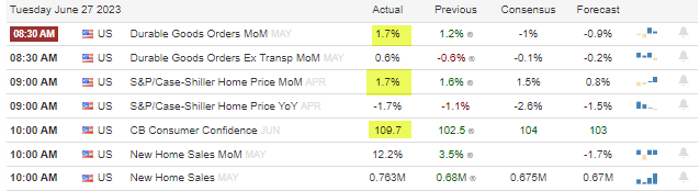 Today’s economic data was filled with upside surprises. Durable goods orders came in hot, home price data came in hot, and consumer confidence came in hot!
