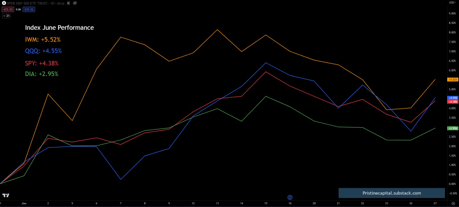 The indices are sitting on hefty gains for the month of June. This is far from a normal month. Important to not get spoiled and think that every month will be like this.
