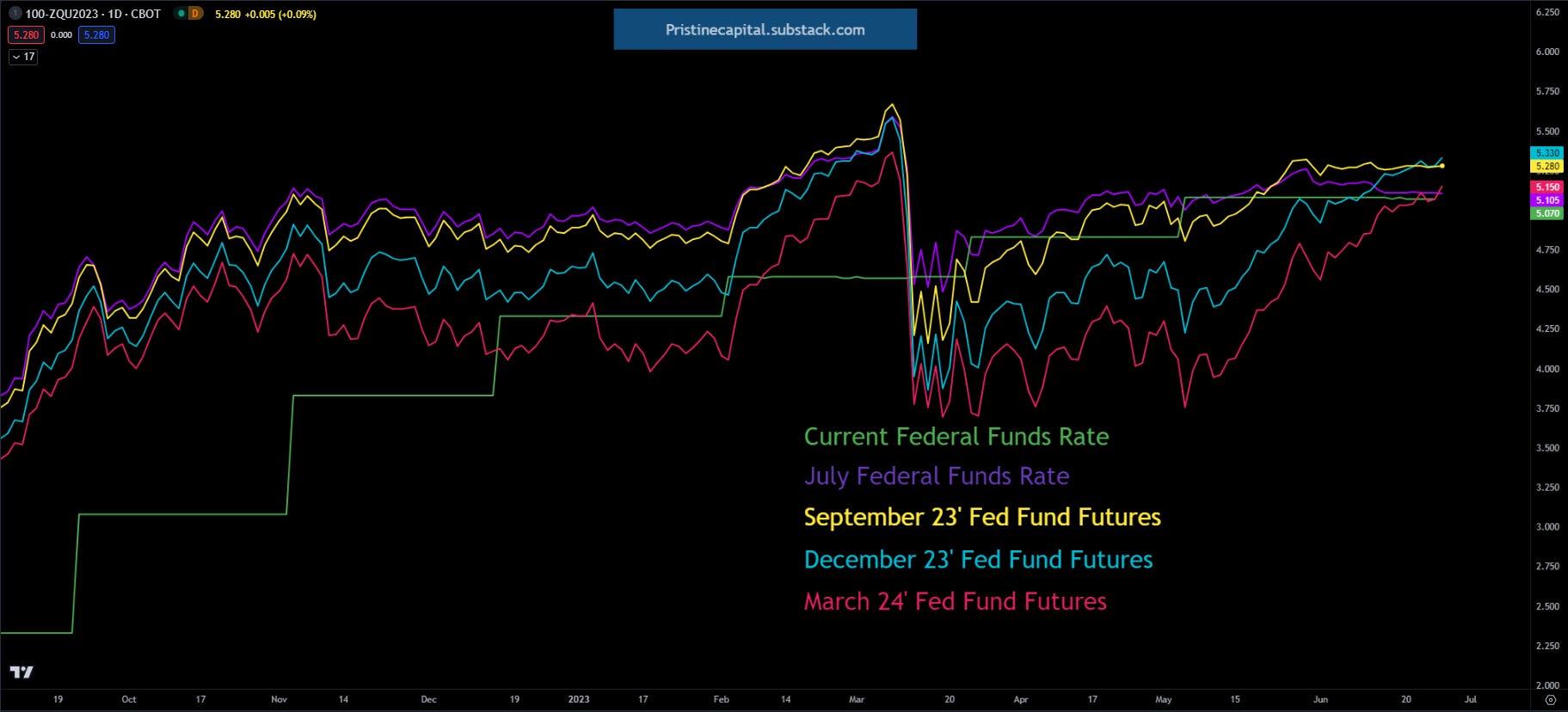Fed fund futures ticked higher as the market priced higher interest rates for longer.