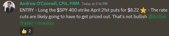 We were well prepared for this scenario, and bot put options on the S&P 500 SPY ETF while the market was still green.
