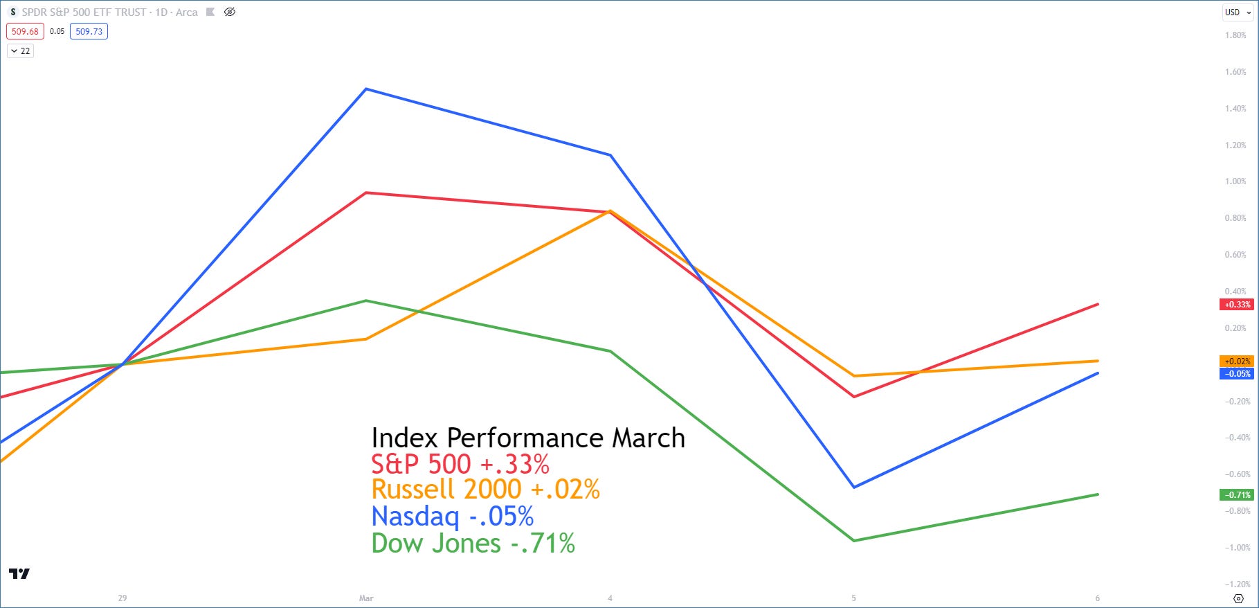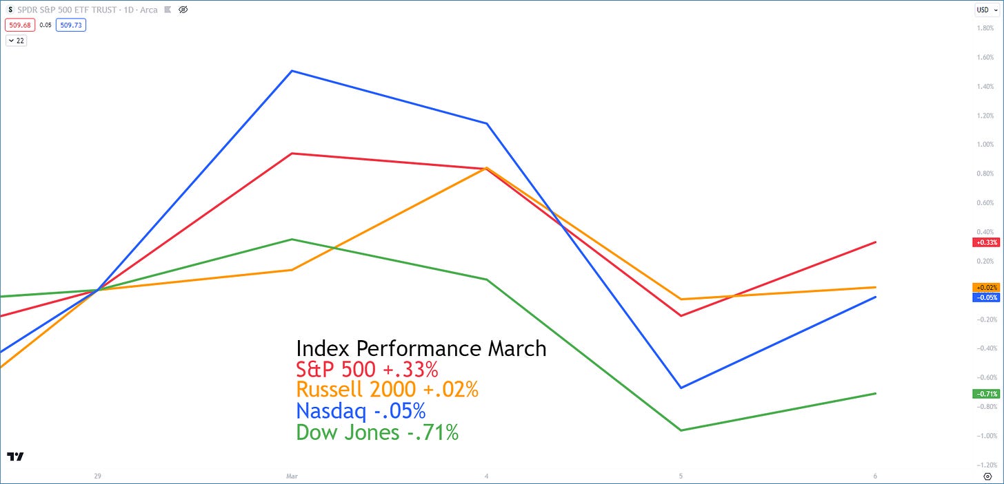 About a week into March and the indices havenāt done anything! Compared to the fast paced action weāve seen over the prior 4 months, the sky is falling, but in realityā¦not even close!š„
