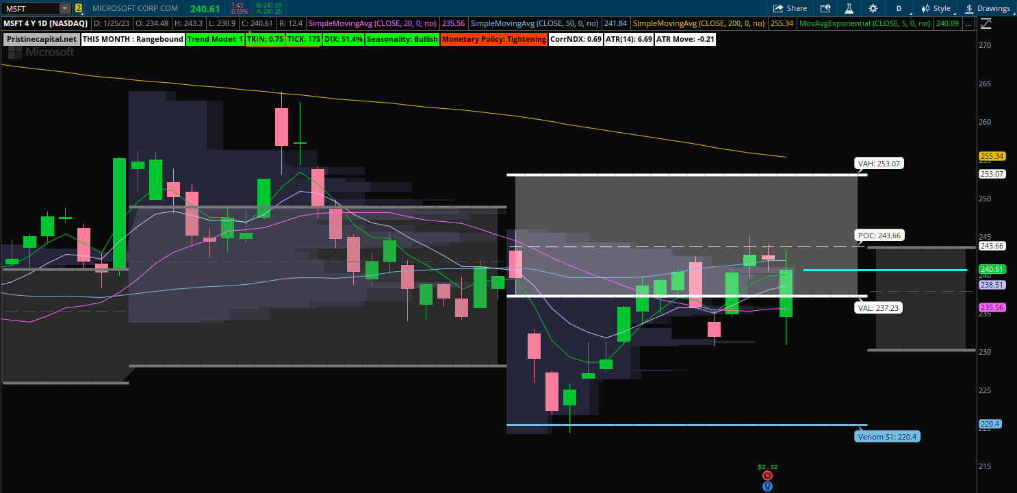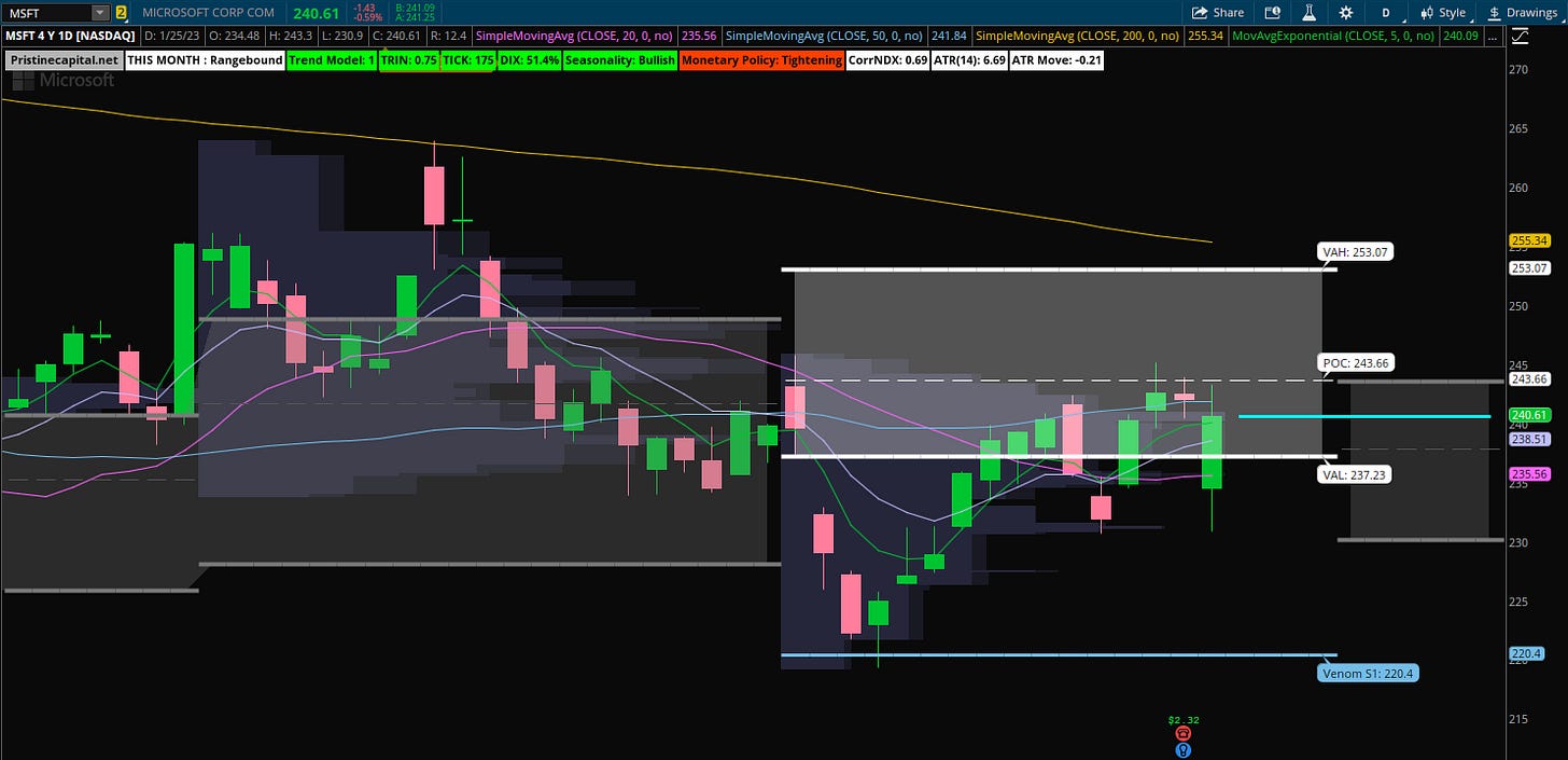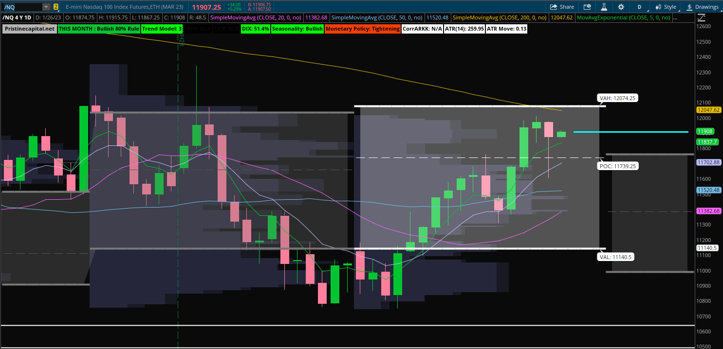 Today’s candle screams shakeout! If sellers were not able to hold price below the monthly POC on weak MSFT earnings, I don’t see why we can’t run higher and test the 200-day SMA and monthly VAH 12,074.25 in the short-term: