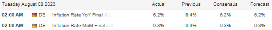 German CPI came out in-line with expectations at +.3% MoM and +6.2% YoY