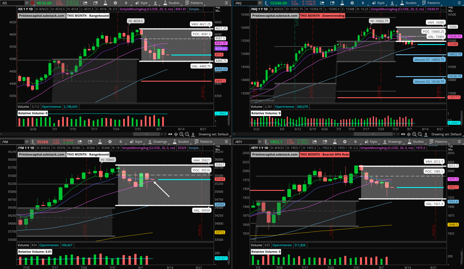 YM Dow Jones -.08% - Above 20-day SMA & Fell Below Monthly POC