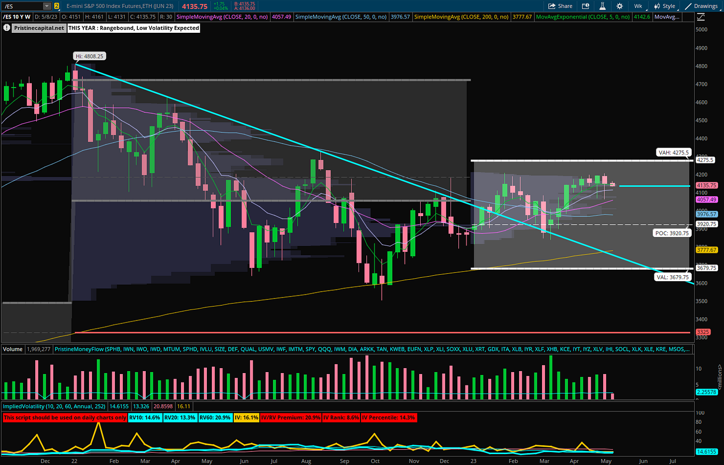 Fed fund futures continue to creep higher, however, the market is still pricing in TWO rate CUTS into year end! This remains the elephant in the room, and is part of the reason why I’ve reduced my risk into the upcoming inflation prints. This doesn’t matter whatsoever…until it does. Time is ticking on the rate cut thesis.
