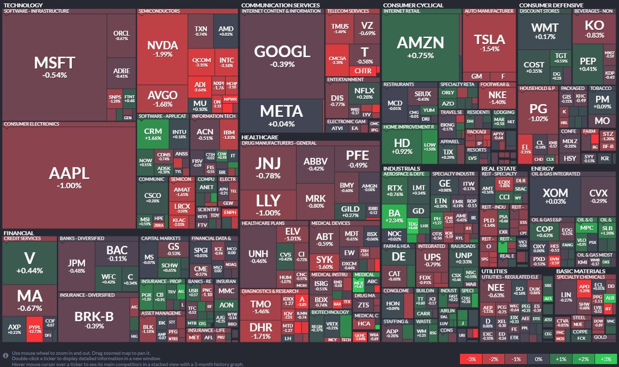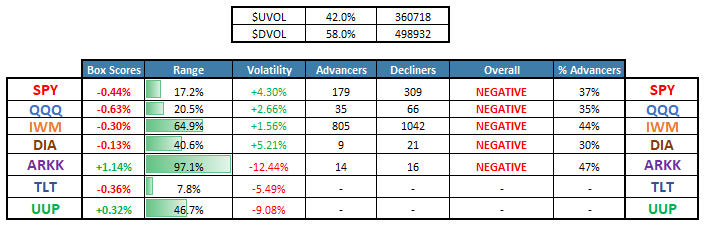 All indices except for the ARKK innovation ETF finished the day in negative territory. Volatility increased heading into CPI, and profit-taking occurred in the crowded megacap tech stocks.