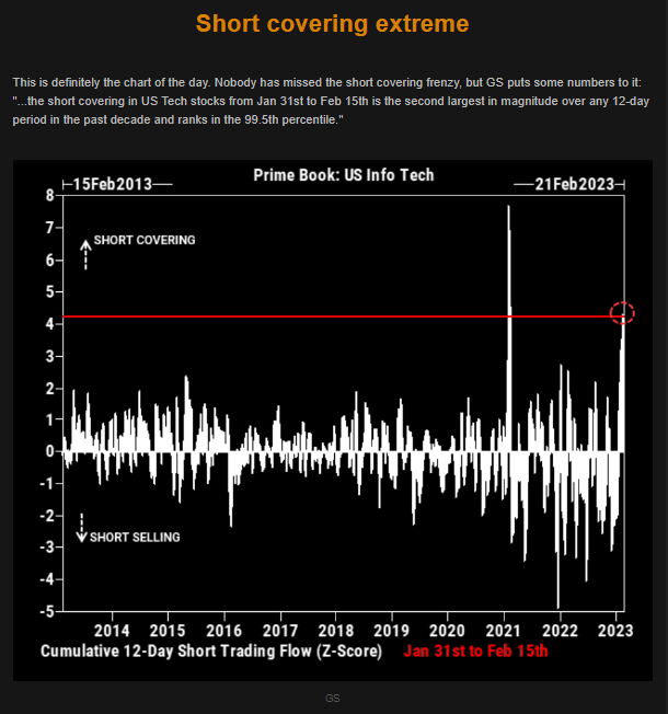 Could it be because technology shorts were being squeezed? From Jan 31st to Feb 15th, we experienced record levels of short covering…