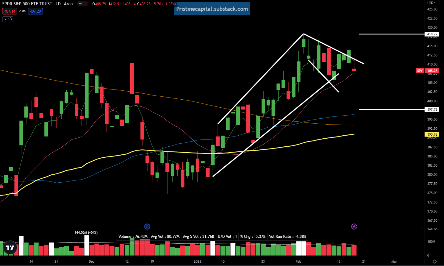 Heading into the week, the options market implied a 2/17 SPY close between 397.13 and 418.27. I believe a large directional move is coming to cap off the week tomorrow.