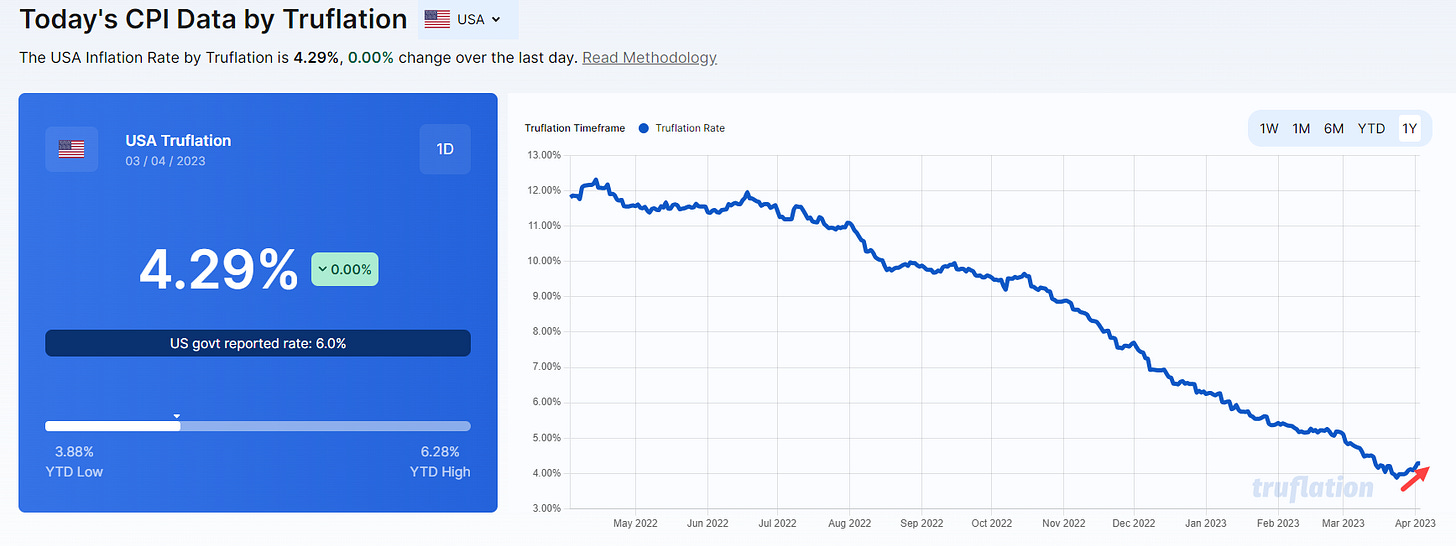 This calls into question whether or not the worst of inflation is behind the market. Our Truflation dashboard bounced up to 4.29% in the aftermath of the oil move.