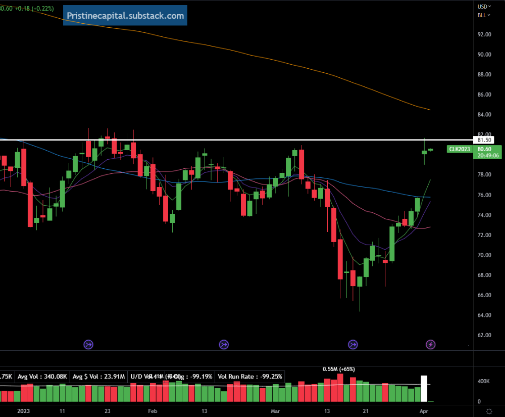 This created a large overnight gap-up in crude, and it finished toward the YTD highs over $80/barrel!