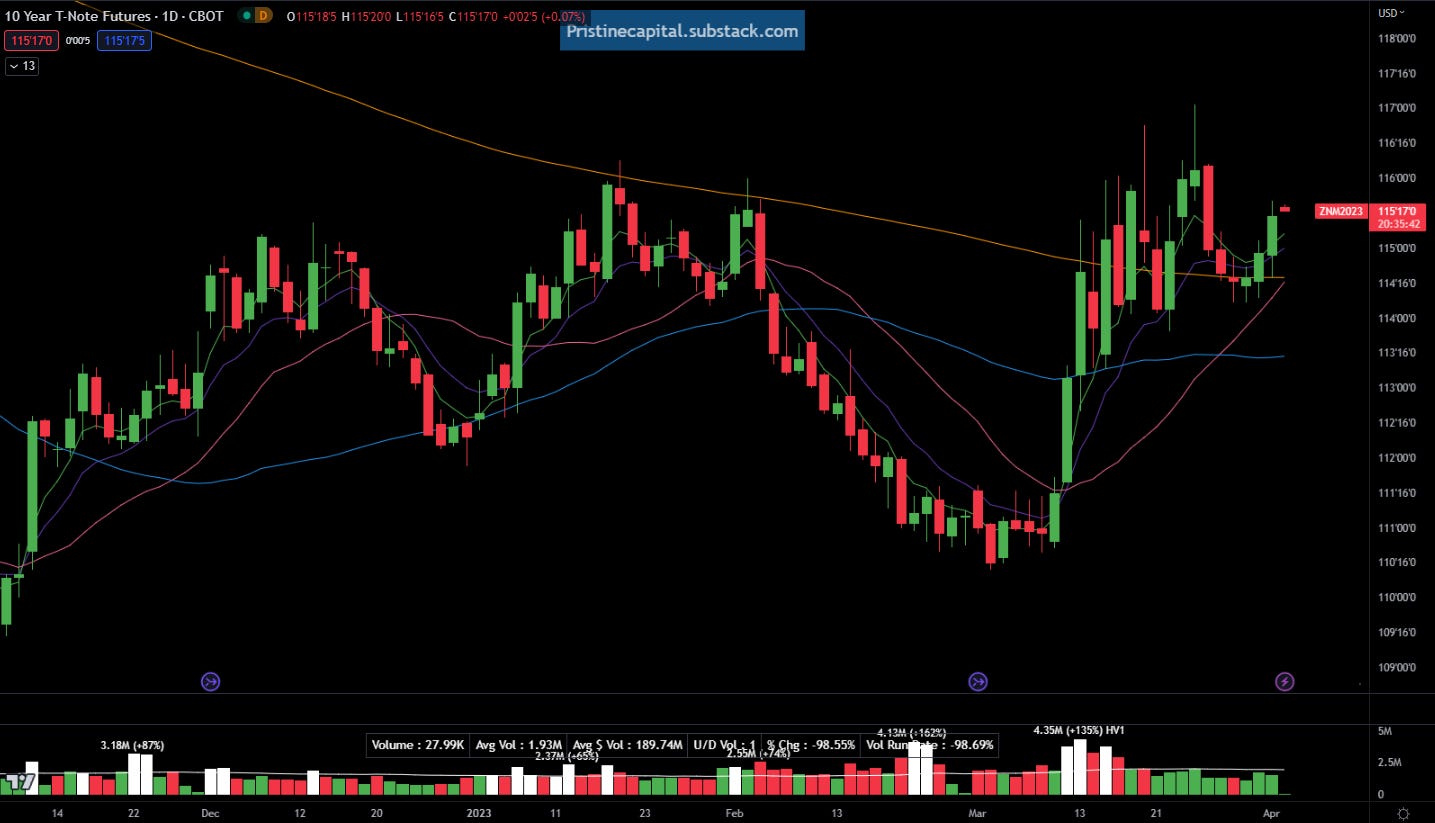 The ZN_F 10yr treasury futures rallied sharply on the recessionary ISM manufacturing report.