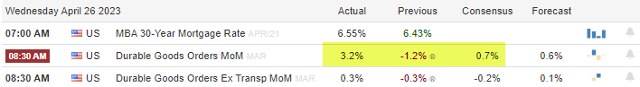 Today’s session kicked off with durable goods orders that came in well above expectations! Another data point that flies in the face of the imminent recession narrative