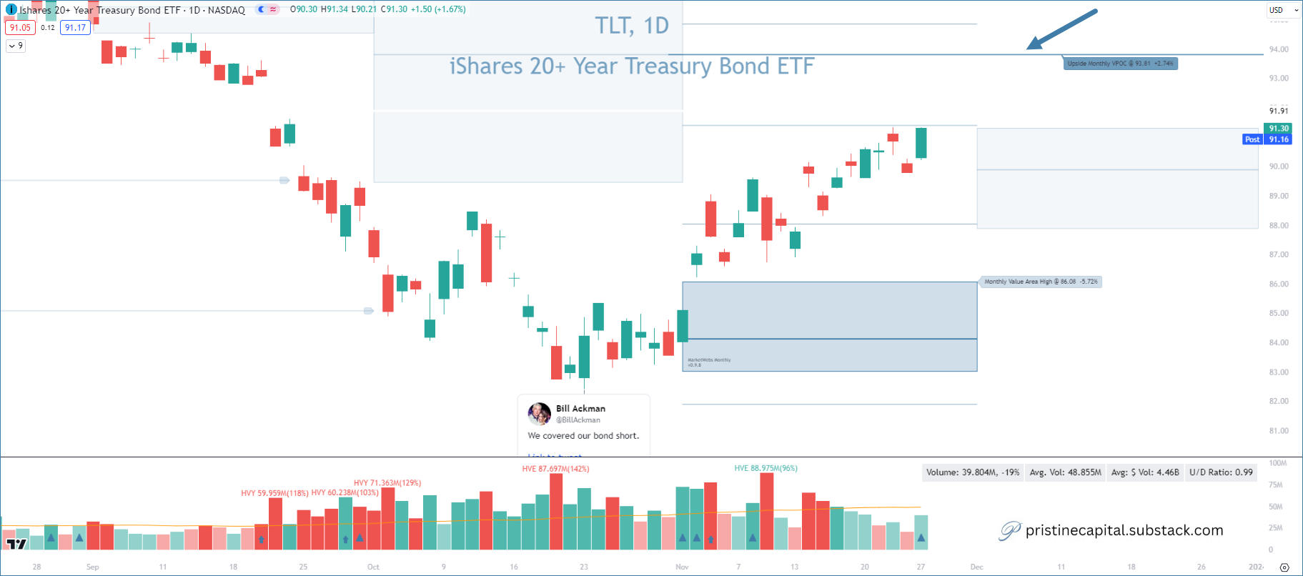 Our baseline assumption is that the TLT ETF takes out the upside VPOC at $93.81 by year-end. So long as the price action continues to take 2 steps forward and one step back, it will be there before we know it👇