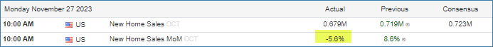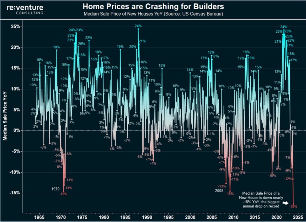 Median sale price of new homes fall 18% YoY → Bonds rally