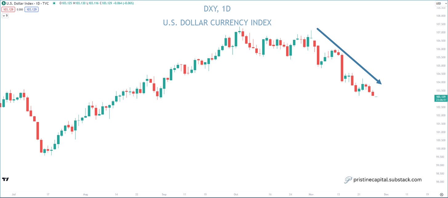 The dollar index chart looks like the TLT chart flipped upside down! Confirmation that the market is pricing lower inflation and growth moving forward ✅