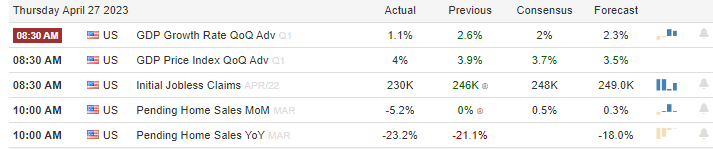 Today’s session kicked off with Q1 GDP data that came in below estimates, and initial jobless claims that came in below estimates: