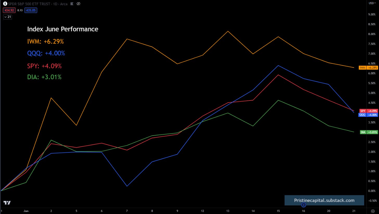 Even after today’s rotational selloff, all of the indices are still sitting on massive gains for the month of June!