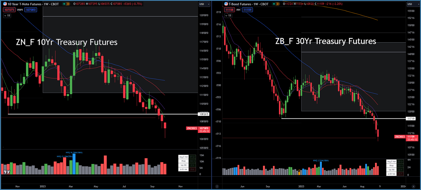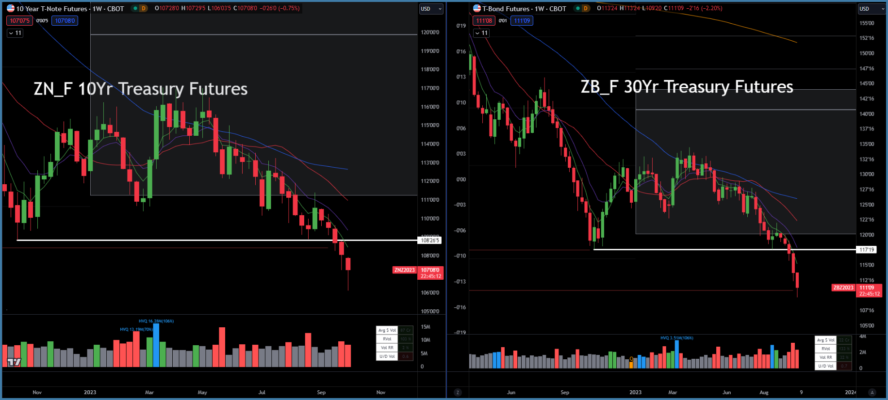 The charts for long-term treasuries still look rough, but ZN is developing a weekly hammer candle, which is a step in the right direction.
