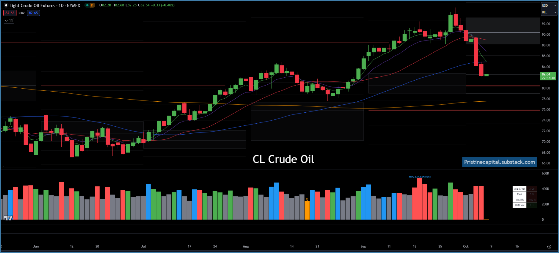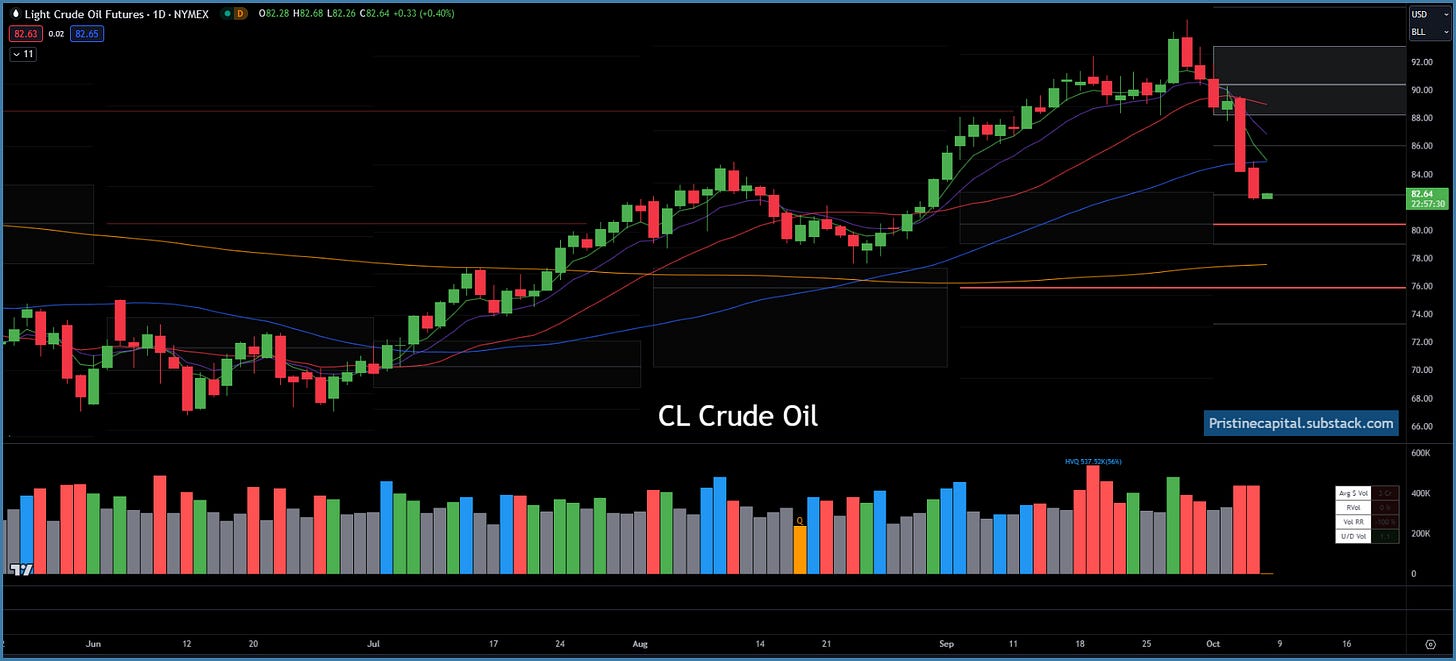 Crude oil continues to cascade lower! Lower energy means lower future inflation, which is positive for risk assets.