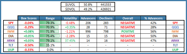 US equity indices were mixed and 50.8% of stocks advanced…but check out the closing ranges on the indices! A high range percentage means that the index finished toward the high of the day. Another positive undercurrent.