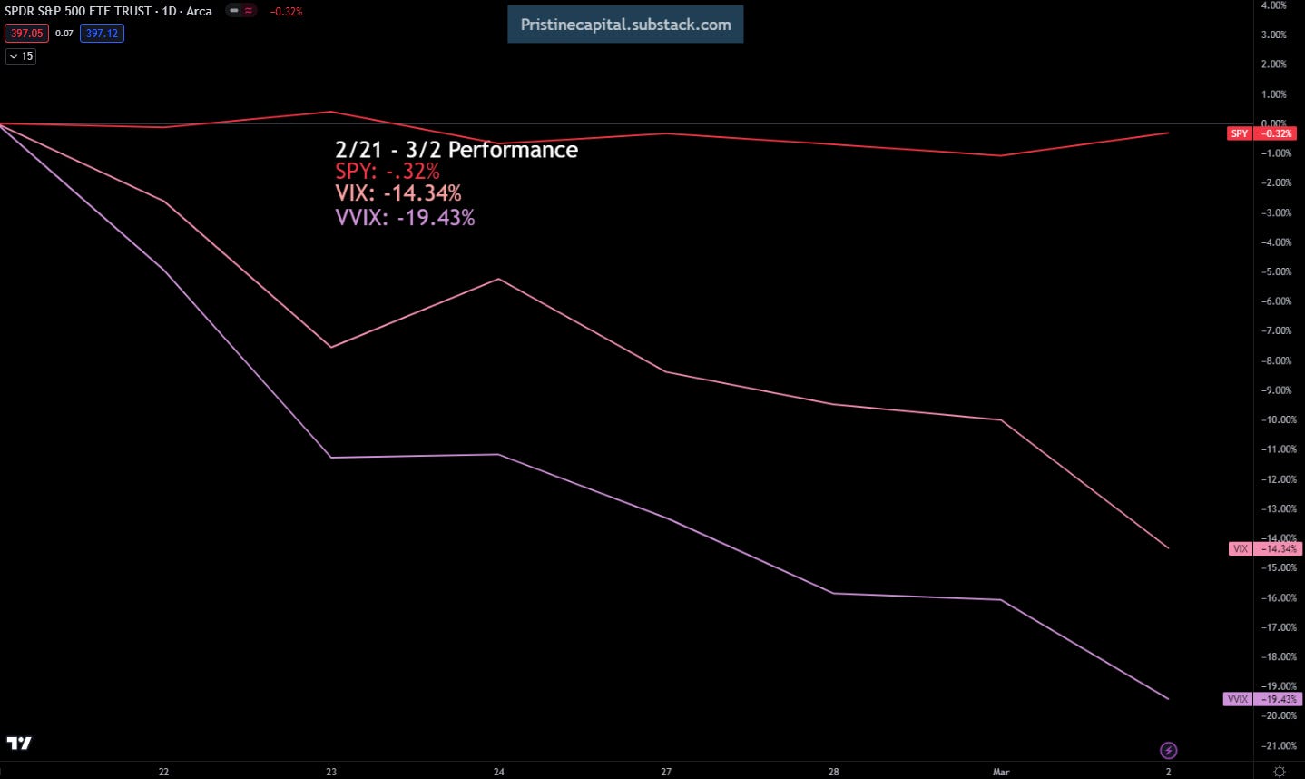 A volatility crush tends to fuel upside in equities, so the fact that we’ve actually declined through this volatility crush is concerning. I would feel much more confident that a durable bottom is in place if the VIX spiked!