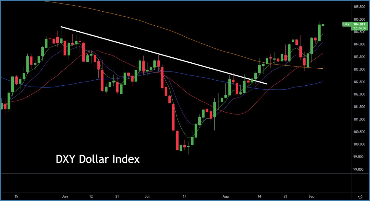 The DXY dollar index remained in its bullish pattern, but is now pretty overbot in the short-term.