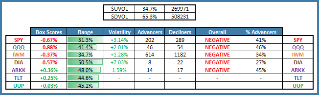 Weak breadth, and surprisingly, ARKK outperformed. The market is never wrong, so I must be missing something here, but I wouldn’t expect ARKK to outperform on a day where we get hot economic data.