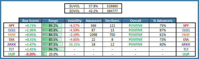 US equities rallied on 57.8% advancers.
