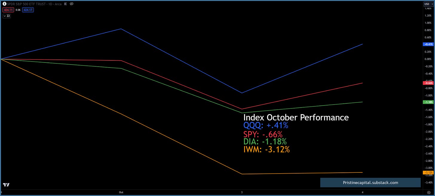 The Nasdaq QQQ is the only green index for October.