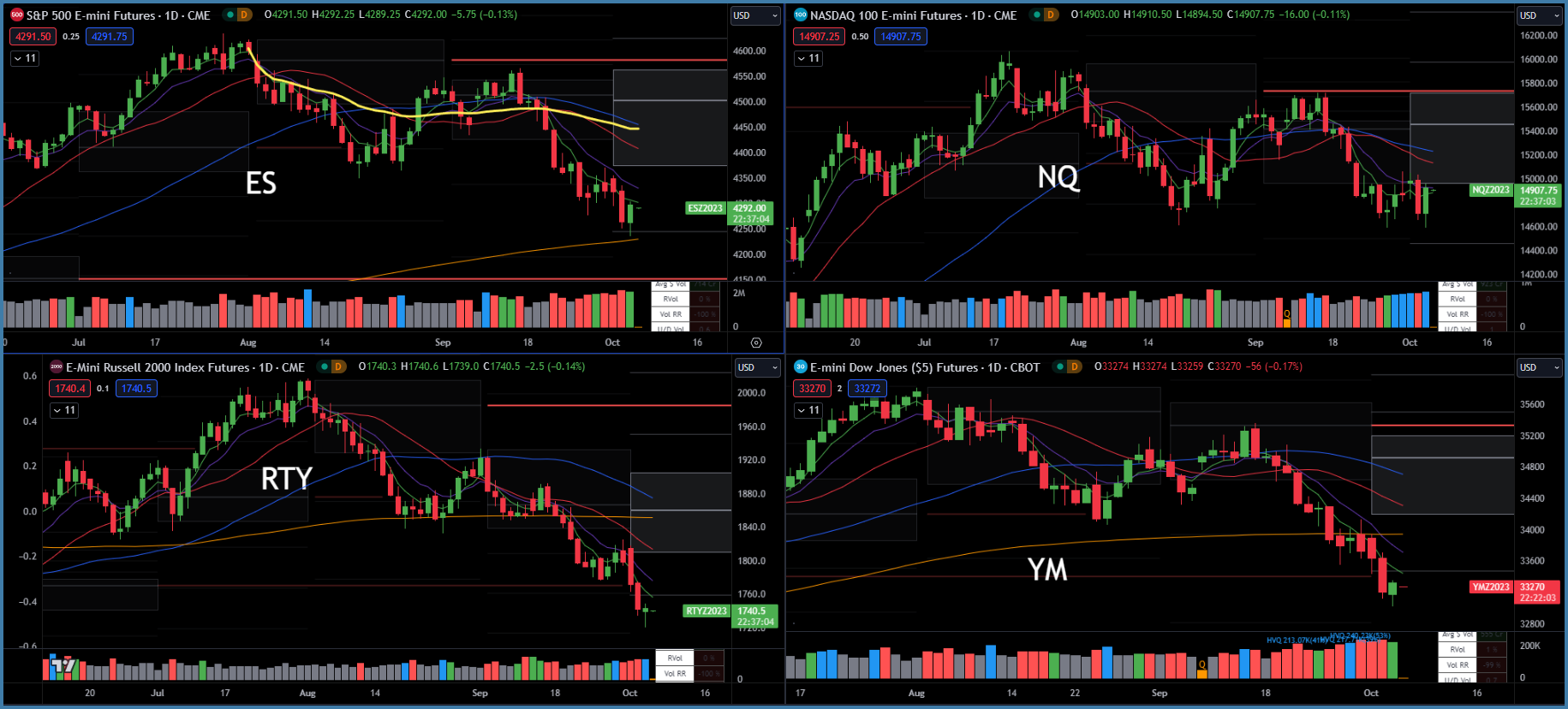 YM Dow Jones - Below key moving averages and below monthly value area