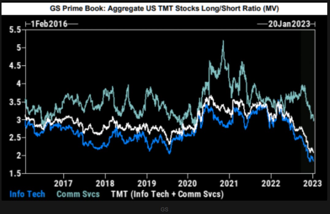 Coming into today’s session, we knew investors were underexposed to TMT (technology) stocks via Goldman Sachs’ prime brokerage data and the decade-high short interest in the Nasdaq QQQ ETF:
