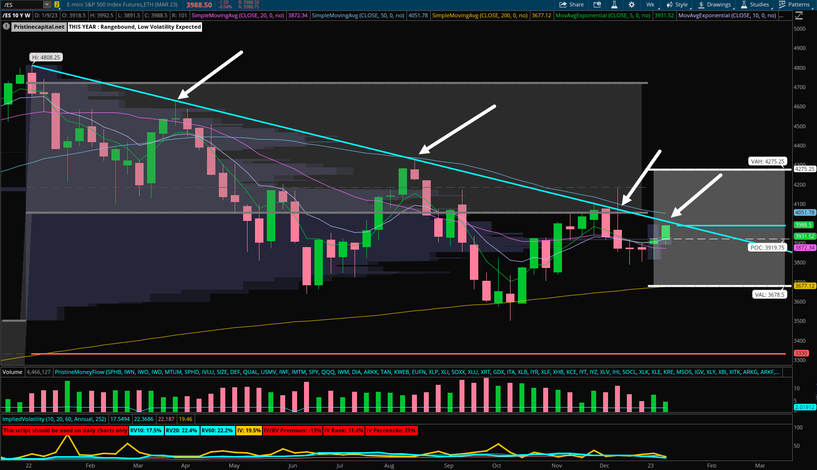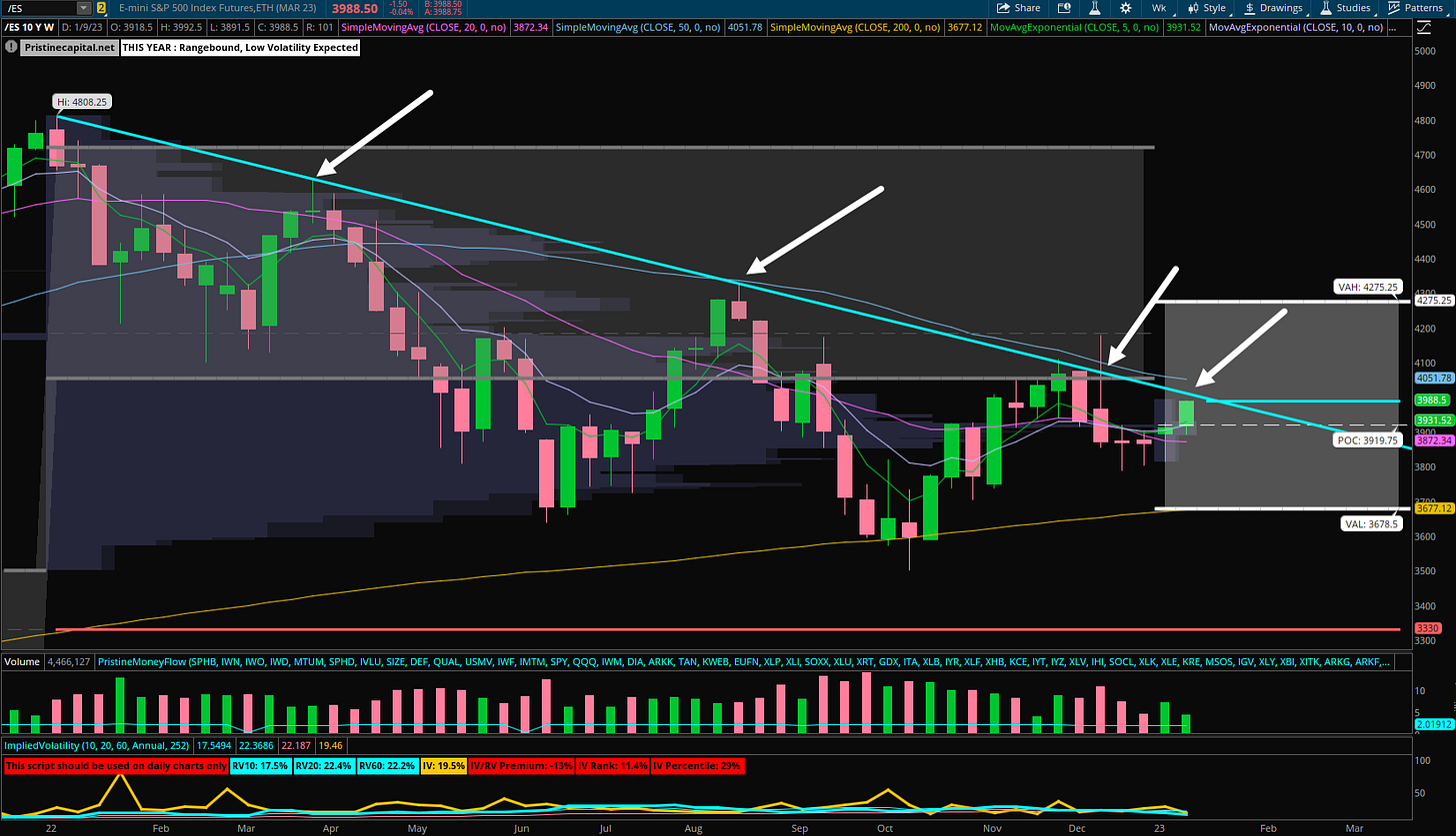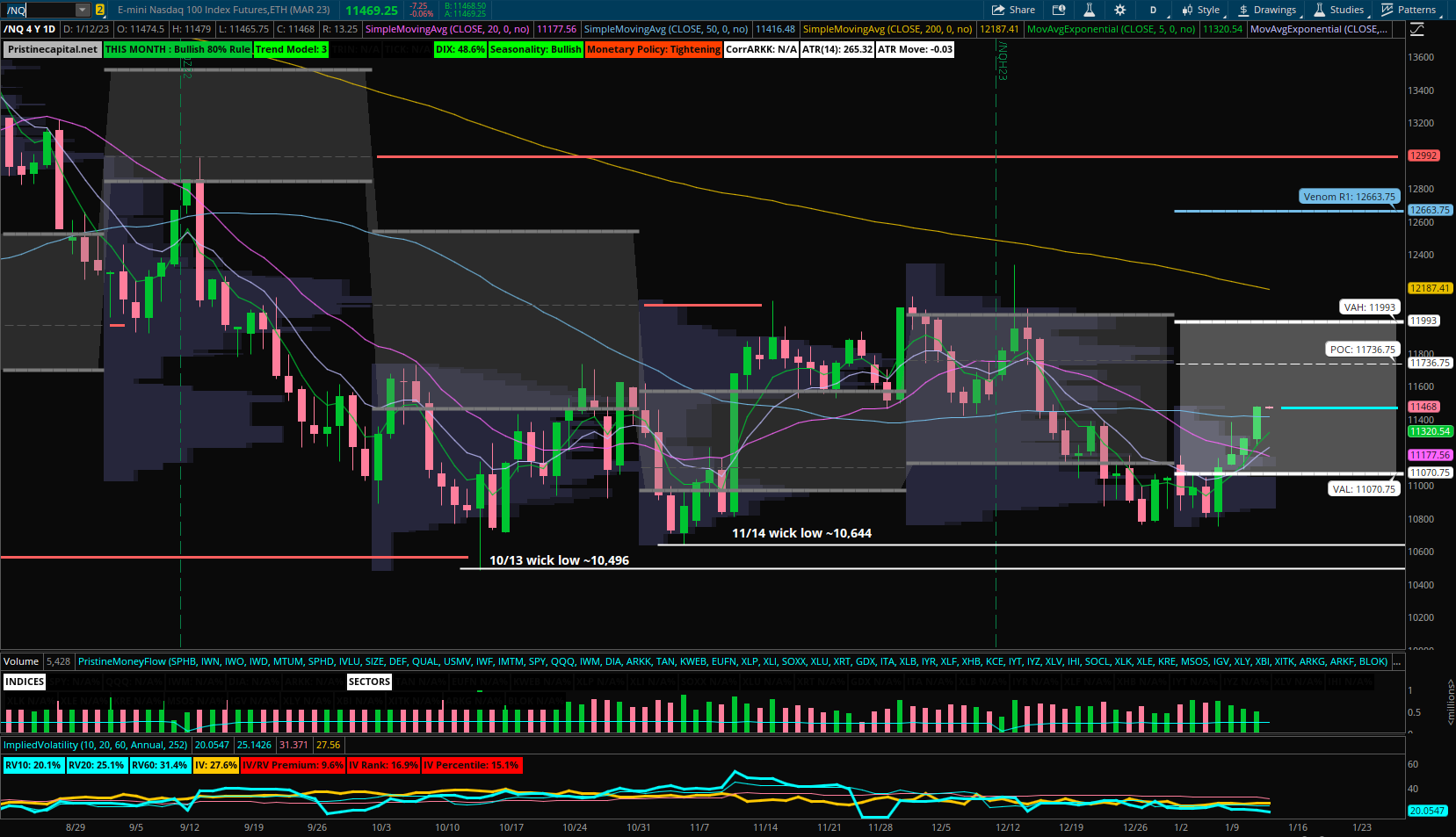 The Nasdaq finished today’s session +1.73% and above the 50-day SMA! One of our key themes heading into the new year was a catch-up trade in megacap tech, and the theme is finally getting legs. The next upside target to look for on continuation of this rally is the monthly POC of ~11,736.75: