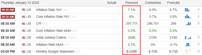 The US CPI data will be released tomorrow 1/12 at 8:30 AM ET:
