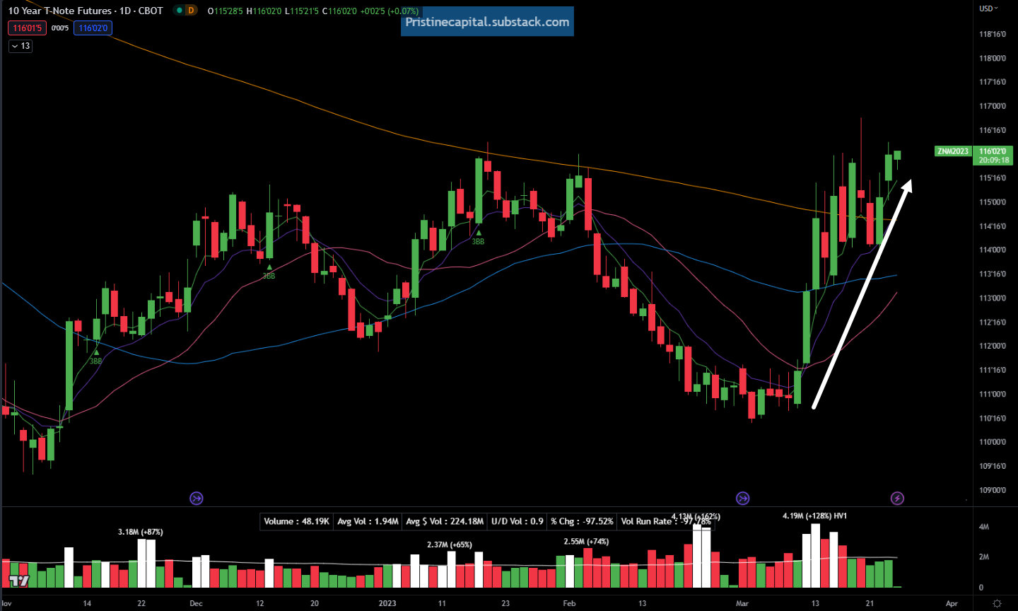 The ZN_F 10yr treasury futures have been bid ever since the crisis broke out and the fed money gun turned on. The system depends on perpetually depressed US bond yields!