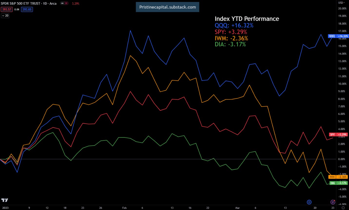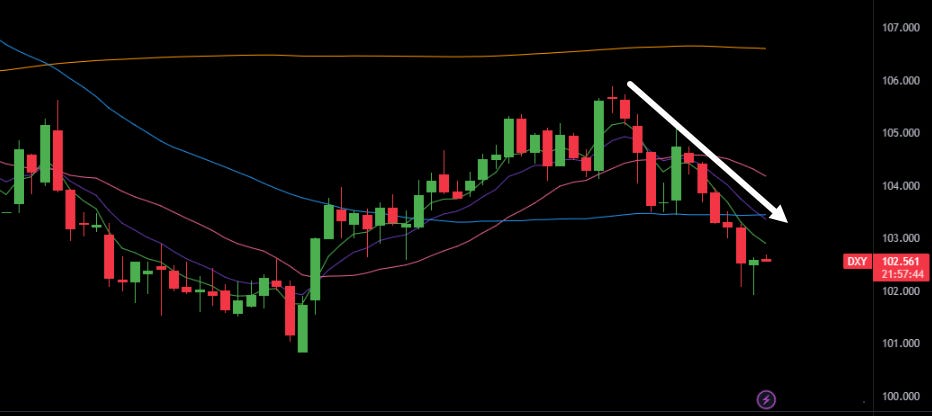 The dollar index has given back almost the entirety of it’s gains since we received hot inflation reports to kick off the year and investors thought the fed was going to raise rates and keep them higher for longer. Based on market generated information, the higher for longer thesis is dead.