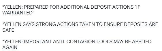 Janet Yellen went from saying that all US bank deposits would be ensured last week, to saying that this idea was no longer being considered yesterday during the Fed meeting, to now today reversing course once again! We can’t make this stuff up! It’s easy to see why the market can’t move in a clear direction given this uncertainty from policy makers in addressing the crisis.