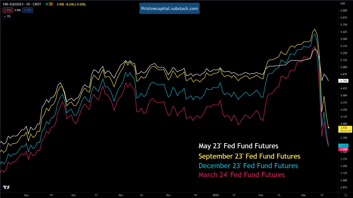 Looking further into the future, most fed fund contracts made new lows! The March 24’ contract is pricing a 3.6% Fed Funds rate, which is almost a full percentage point lower than where it is today!