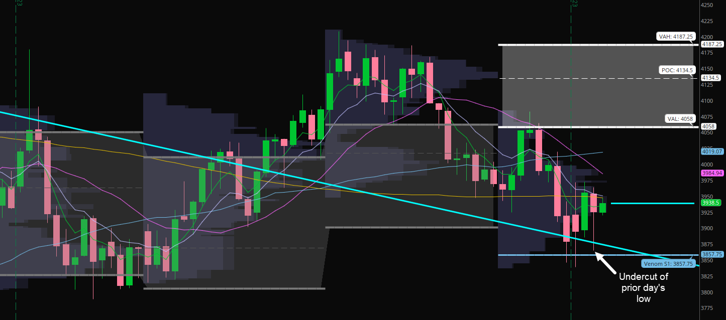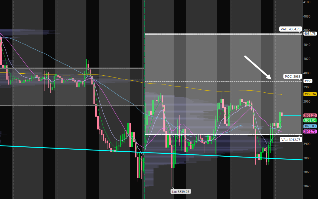 And finally, zooming into the hourly chart, the ES has shaken out below the weekly value area low multiple times, but has failed to follow through below it! We found our way back into the weekly value area in the after hours session, and it would not surprise me at all if we tagged the weekly POC ~3,988 into Friday’s opex.