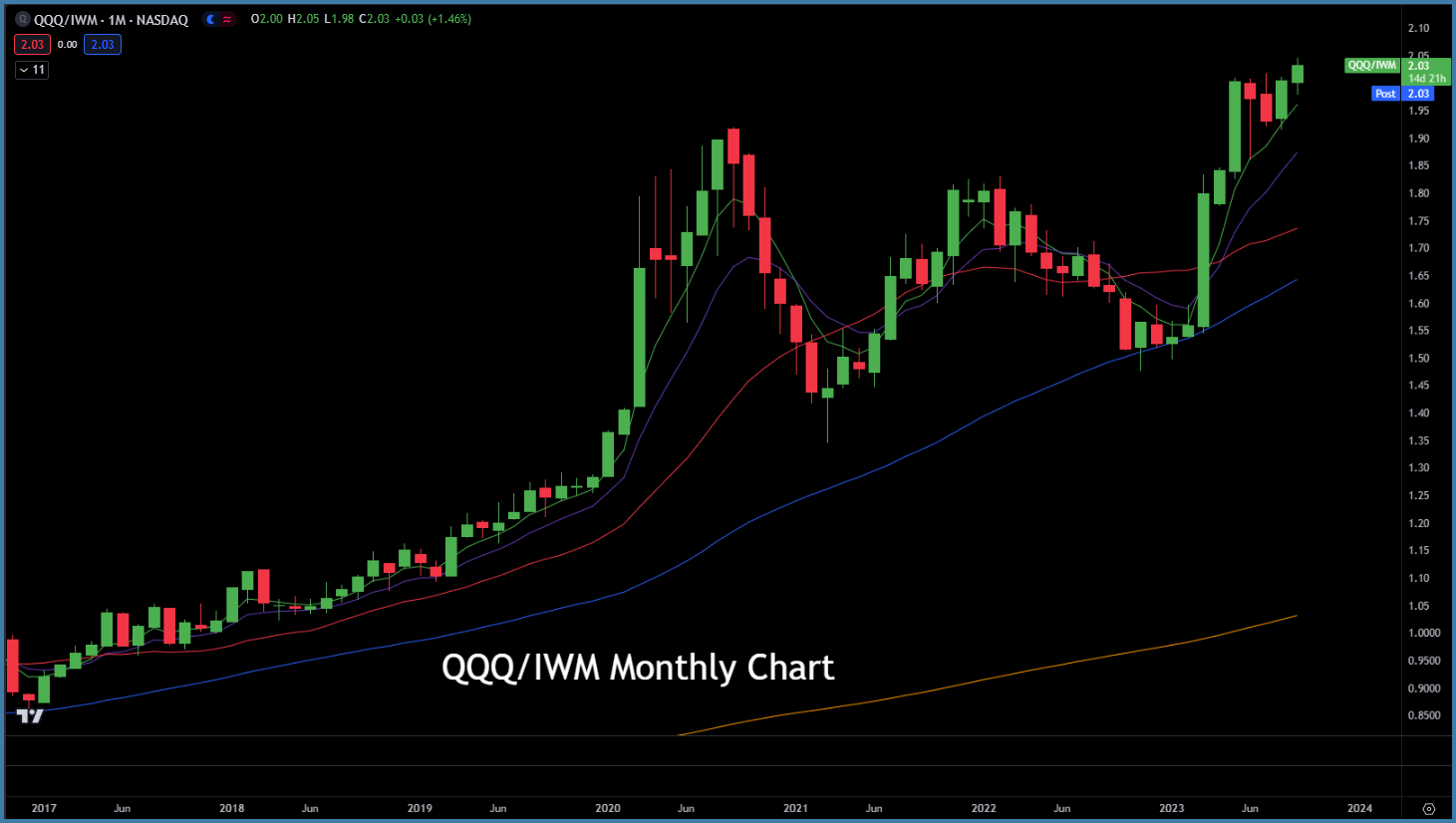 With this said, one day does not a trend make. The Nasdaq QQQ outperformance vs IWM Small caps we are seeing is unprecedented.
