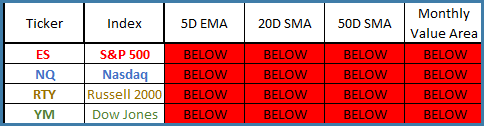 Indices remain below their short-term moving averages 👇