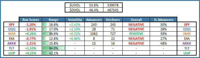 The headline indices SPY and QQQ took a nasty spill, but 53.6% of stocks advanced! The IWM small cap index finished in positive territory ✔️