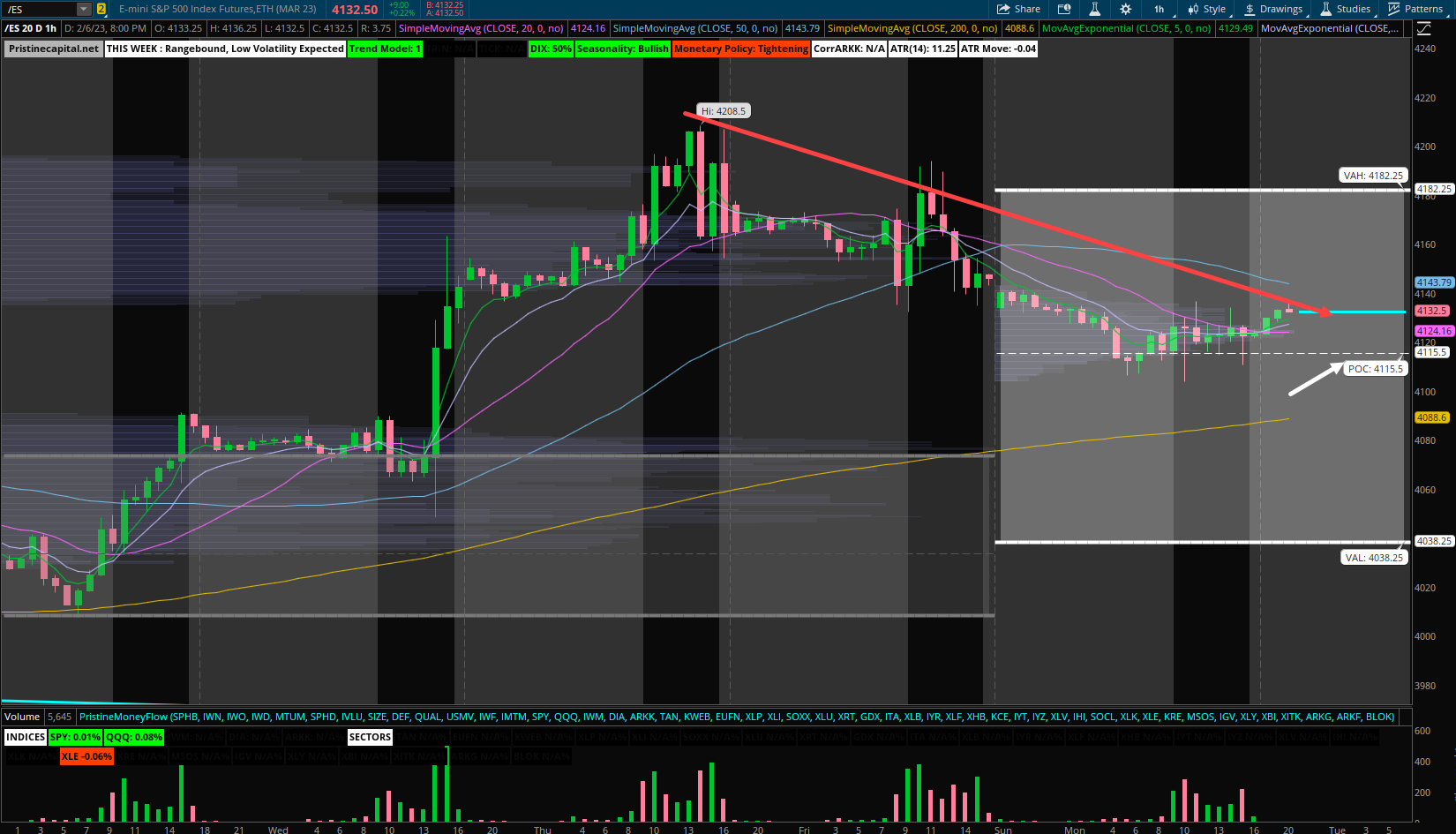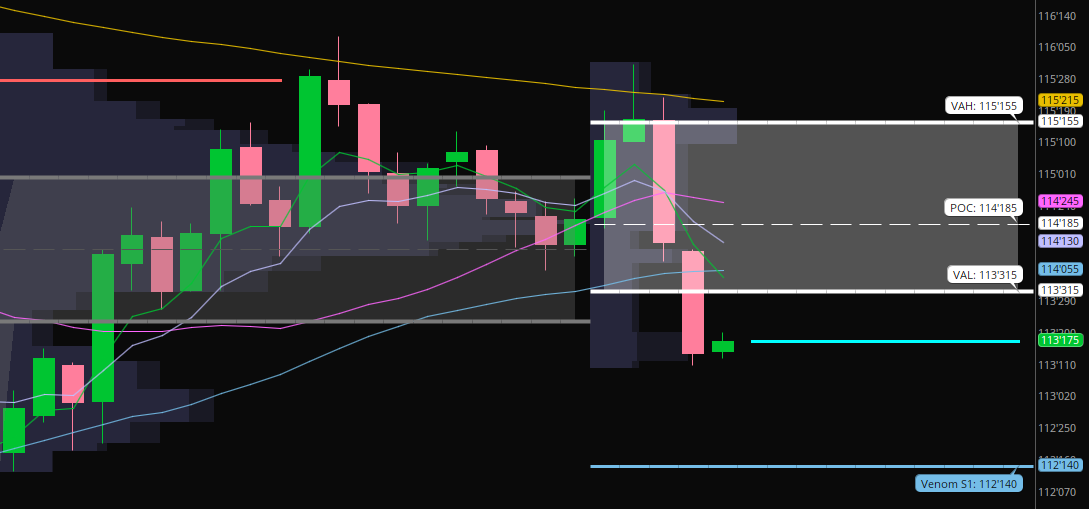 So far this pullback from the highs has been orderly. We tested the weekly point of control (the most highly traded level from last week) ~4,115 multiple times today, but sellers could not hold price below it. I will be watching this level closely during tomorrow’s session! My bias is that we will end up falling below this level, but I must remain open to being completely wrong. If we can’t close below it, we must remain open to a retest of the top of value at ~4,182.25