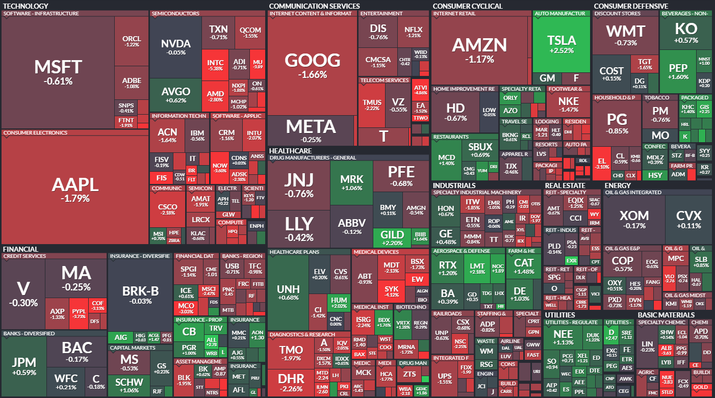 Aside from TSLA, which participated in the blow-off of any and all companies related to the buzz word ‘AI’, defensive names reigned supreme and insulated the SPY from more significant losses. The top positive contributor’s to today’s SPY performance were as follows:
