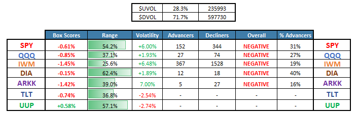 The IWM small caps were today’s relative loser, while the S&P 500 only finished -.61%