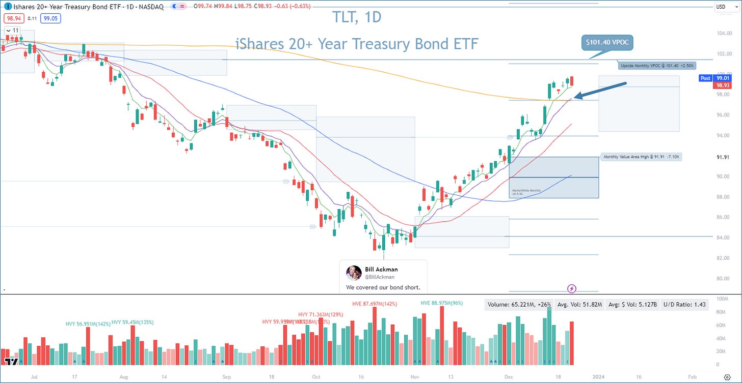 TLT is consolidating into year-end after a big run higher. The 10-day EMA is finally catching up to price. A close below that moving average would signal a negative change of character👇