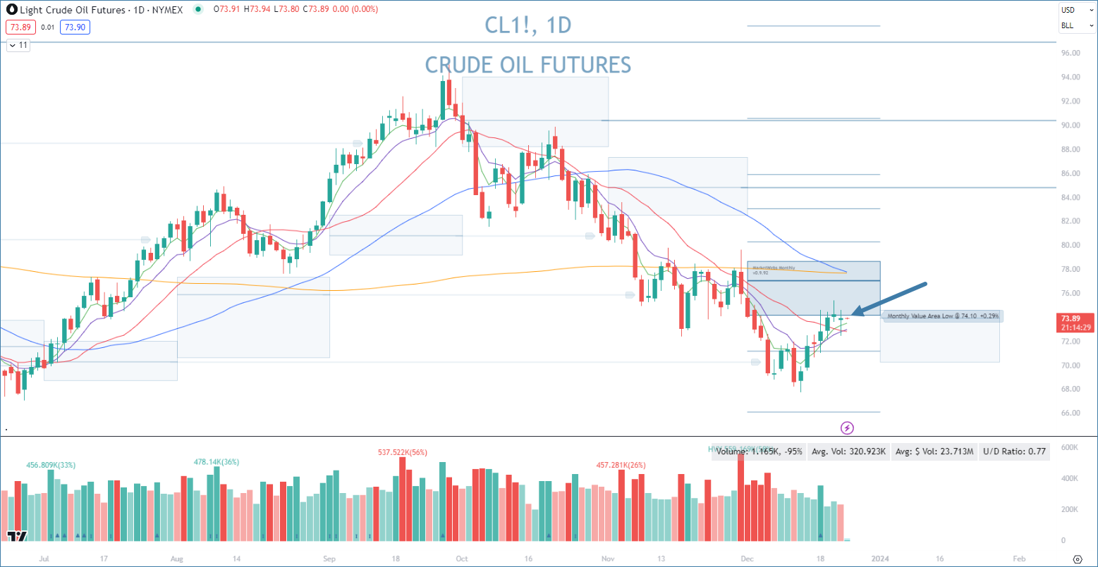 Crude oil consolidated at the bottom of the monthly value area $74.10👇