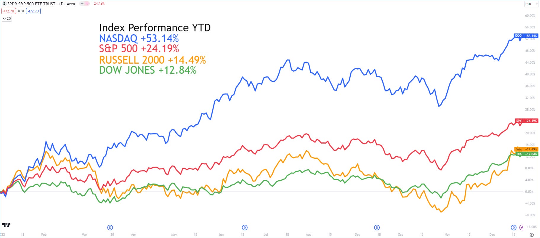 The indices are all up double digits for the year 2023, which creates a ton of end-of-year momentum. It is worth highlighting that all of this YTD momentum disappears in 6 trading sessions when the calendar flips to 2024 👇